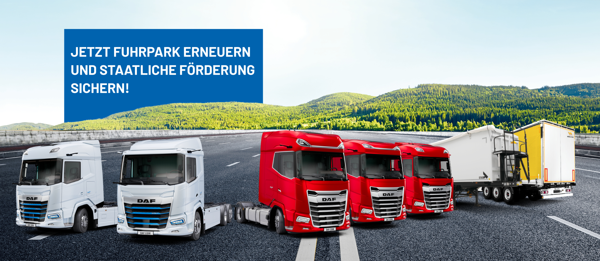 Als Vertriebs- und Servicepartner für Lastkraftwagen der Marke DAF sind wir Ihr Partner für die Zukunft des Transportwesens. Entdecken Sie mit der neuen Generation DAF Trucks den branchenführenden Standard hinsichtlich Komfort, Effizienz und Sicherheit. Mit der Modellpalette von DAF können wir Ihnen für jede Transportanforderung ein passendes Fahrzeug anbieten.